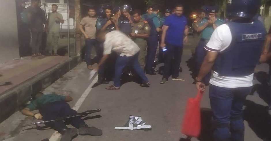 বারিধারায় ফিলিস্তিন দূতাবাসের সামনে পুলিশের গুলিতে পুলিশ নিহত