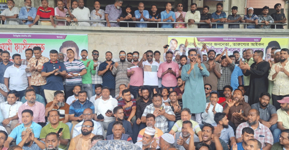 বিএনপি নেতা ইশরাক হোসেনকে মেয়রের দায়িত্ব দেওয়ার দাবিতে নগর ভবনের সামনে আজও অবস্থান কর্মসূচি পালন করছে ডিএসসিসির কর্মচারী ইউনিয়নের কর্মচারীদের