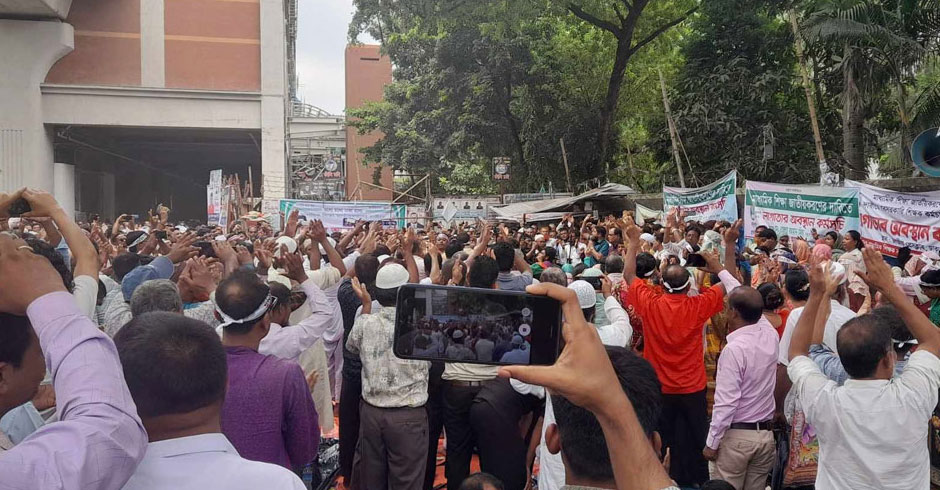 এমপিওভুক্ত শিক্ষা জাতীয়করণ ও বিভিন্ন ভাতা বৃদ্ধির দাবিতে জাতীয় প্রেসক্লাবের সামনে সমাবেশ করেছেন সারাদেশ থেকে আসা হাজারো এমপিওভুক্ত স্কুল, কলেজ,