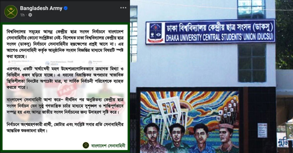 ডাকসু নির্বাচনে সেনাবাহিনীর কোনো সংশ্লিষ্টতা নেই: সেনাবাহিনী