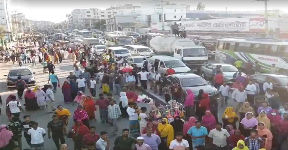 তৃতীয় দিনের মতো মহাসড়ক অবরোধ করে শ্রমিক বিক্ষোভ