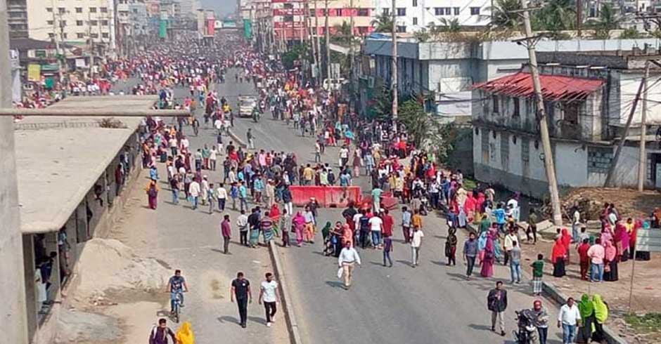 সিটি করপোরেশনের গাড়িচাপায় পোশাক শ্রমিক নিহত, মহাসড়ক অবরোধ-গাড়িতে আগুন