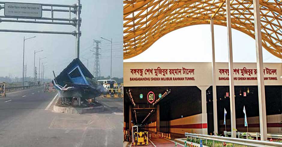 বঙ্গবন্ধু টানেলে মাইক্রোবাসের ধাক্কায় গুঁড়িয়ে গেল সিকিউরিটি পোস্ট