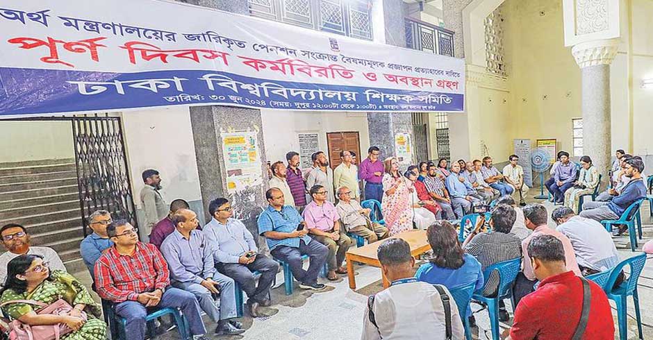 সর্বজনীন পেনশনের ‘প্রত্যয় স্কিম’ প্রত্যাহারসহ তিন দাবিতে আজ সোমবার (০১জুলাই) থেকে দেশের পাবলিক বিশ্ববিদ্যালয়ে সর্বাত্মক কর্মবিরতি ঘোষণা দিয়েছে বাংলাদেশ বিশ্ববিদ্যালয়
