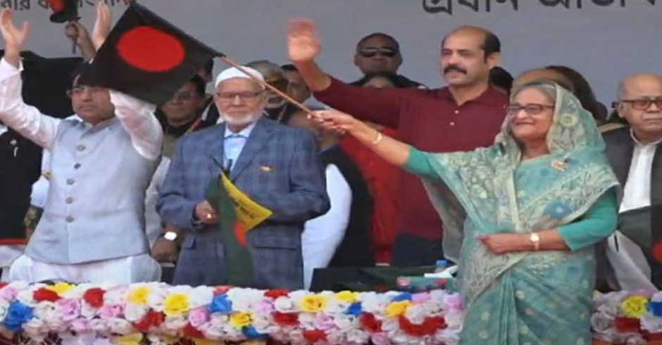 কলাবাগান জনসভায় যোগ দিয়েছেন শেখ হাসিনা